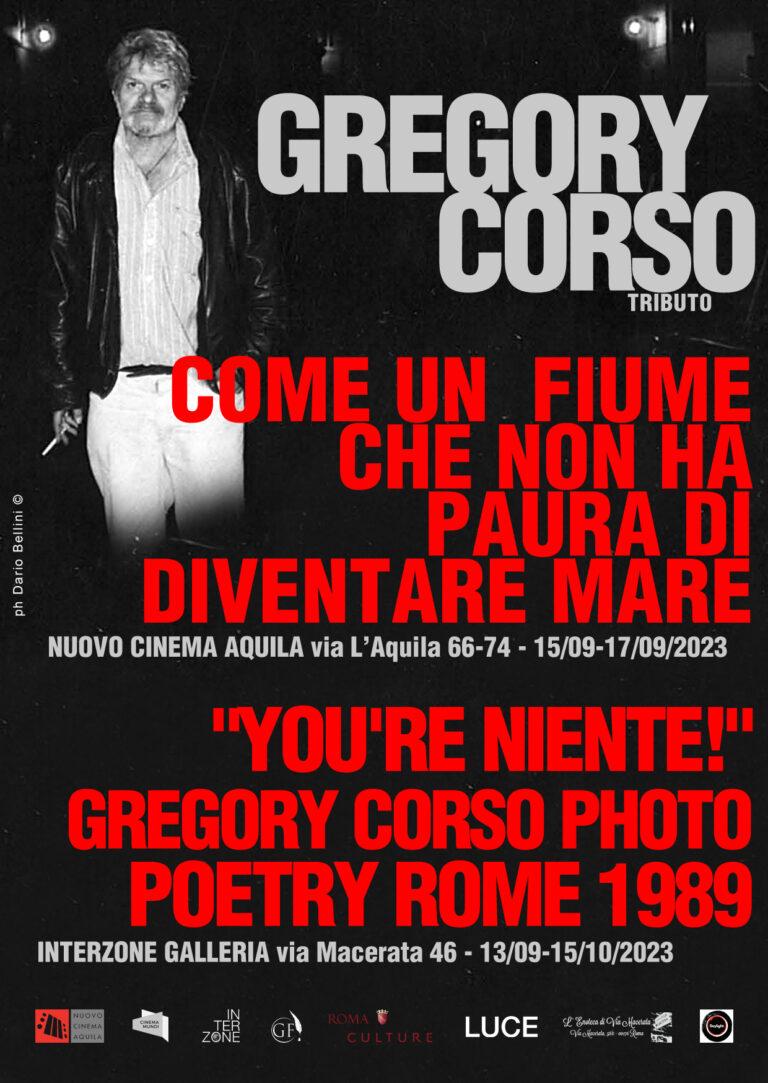 Giunge nella sala cara al Pigneto un progetto che intende sviluppare un percorso filmico, musicale, fotografico, performativo che attraverso una serie di appuntamenti permetterà di perdersi nella poetica di Gregory Corso. L’evento è organizzato da galleria Interzone e Cinema Mundi Cooperativa Onlus, con la Direzione artistica di Michele Corleone e Dario Bellini, si avvale di Alessandra Vanzi come performer moderatrice e per le traduzioni simultanee. La rassegna è gratuita se escludiamo le proiezioni di Domenica 17 Settembre e relativi incontri, per le quale è previsto un biglietto di 5 euro.